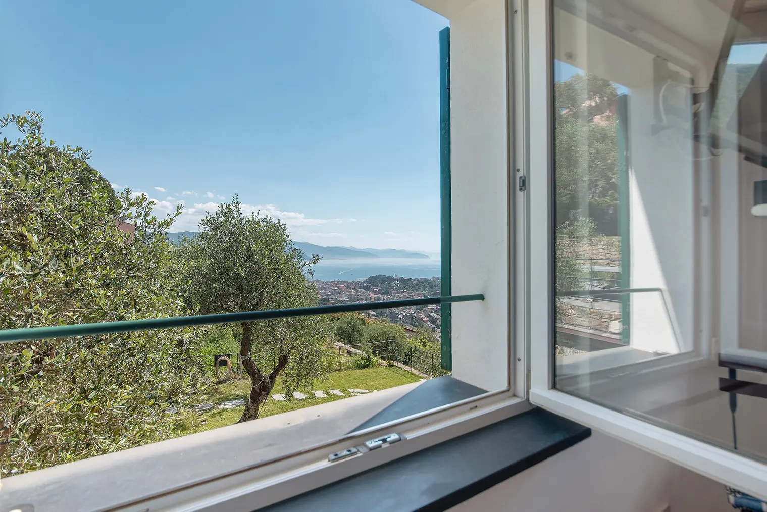 The 15 m² room with independent entrance consists of a double bed, bathroom, kitchenette with coffee maker, tea kettle and fridge, and outdoor terrace/patio with sea view. Optionally, an extra room with a single bed is available. This living room can accommodate 2 or 3 people. It is possible to cook with the shared barbecue near the pool.