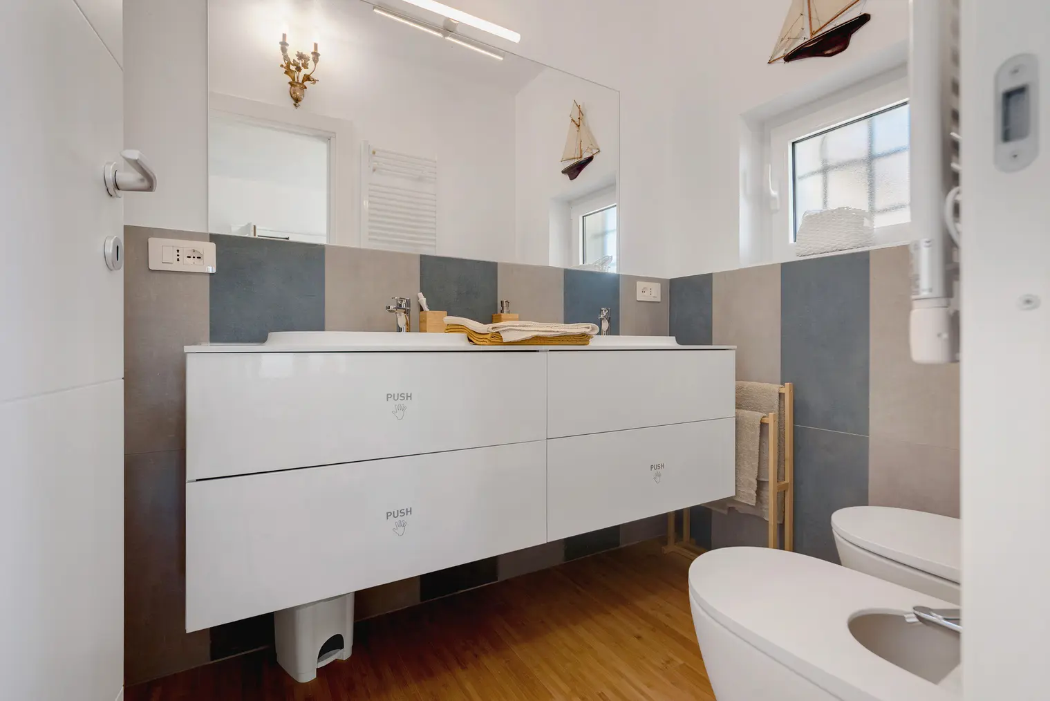 La chambre de 15 m² avec entrée indépendante se compose d’un lit double, d’une salle de bain, d’une kitchenette avec machine à café, bouilloire et réfrigérateur, et d’un patio extérieur avec vue sur la mer. Cette chambre peut accueillir 2 personnes. Il est possible de cuisiner sur le barbecue commun près de la piscine.